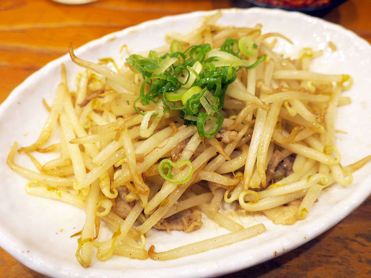 大好きもやし。もちろんオーダー後の調理で湯気をあげてのサーブ。