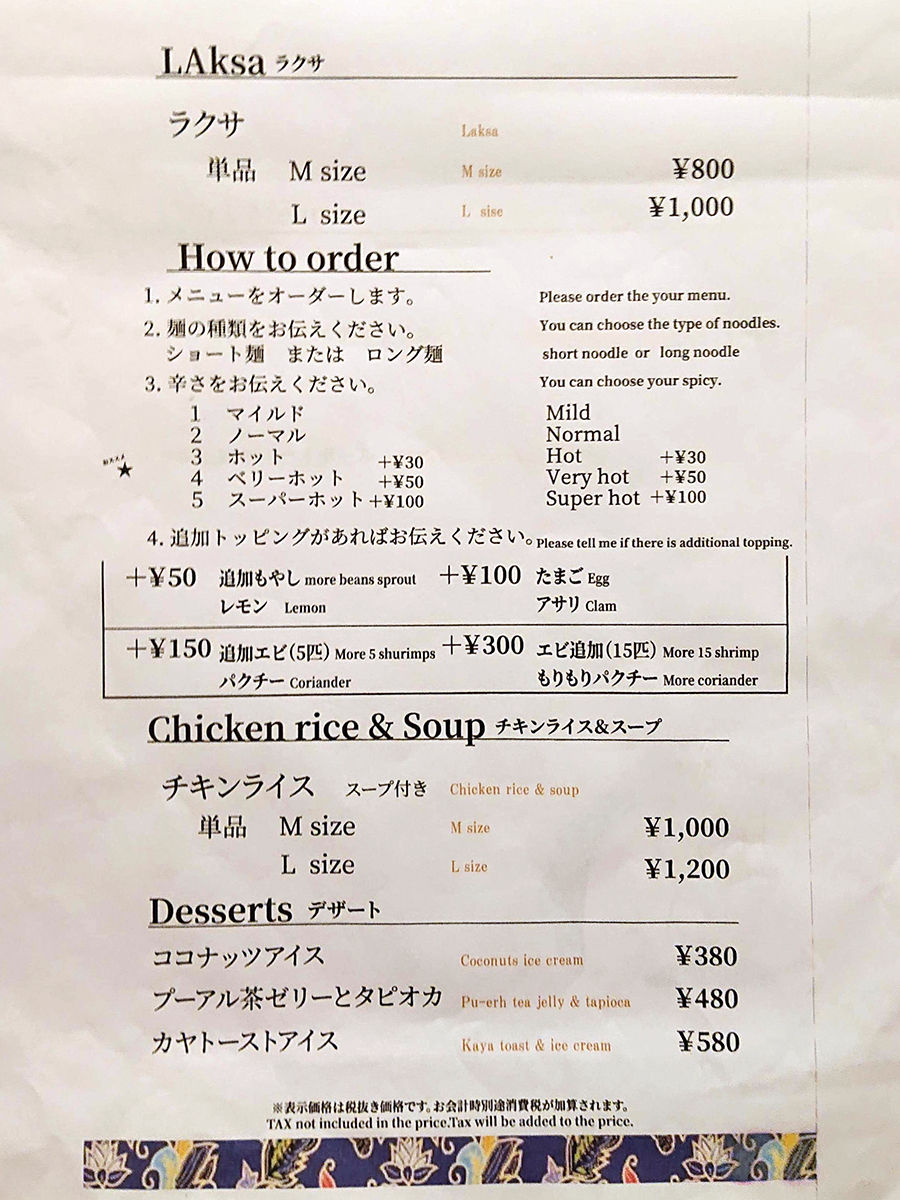 ラクサ(Mサイズ)¥800