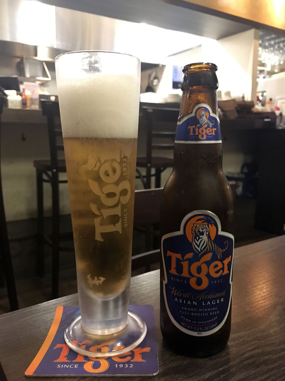 まずはシンガポールビールのタイガービール。やっぱこれでしょ。グラスもそれ専用が嬉しい♪