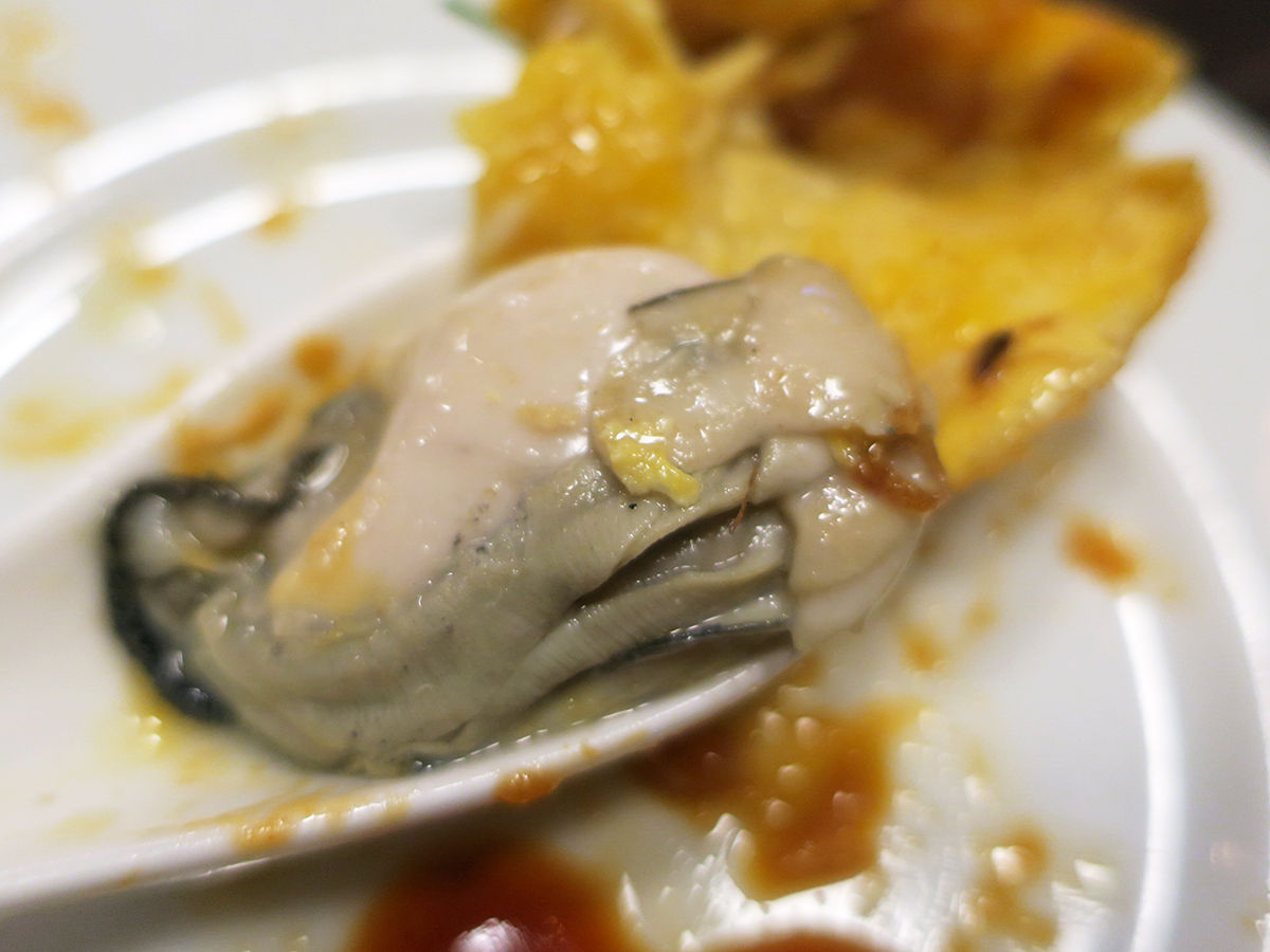 たっぷり油で揚げ焼きされたような香ばしさもあるふわ卵にカキ大っきい!プリップリ!磯の香りブワッ!めっちゃ贅沢〜!