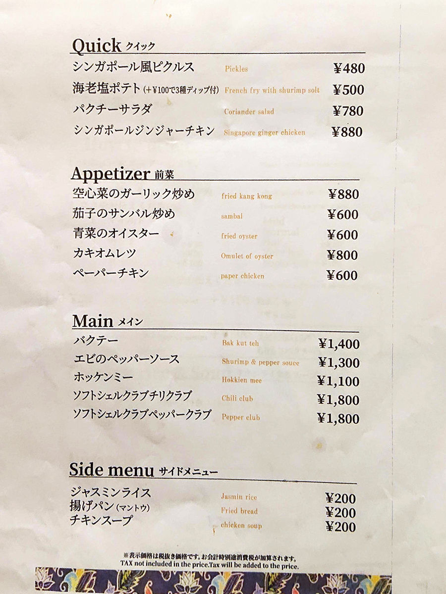 店名通り、シンガポール料理をいただけるお店。