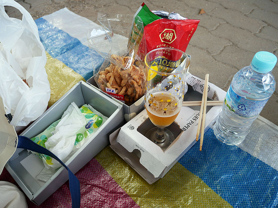 正直、フードは高いです!wまあイベントは高いよね。どうしても食べたいものがあれば別だけど、そうでもなければ(と言ってはアレだけど)持参するのがベストかもです、ハイ。実際、隣近所さんたちみなさんそれぞれ好みのおつまみやらお弁当やらをビニシーに広げてらっしゃいました。慣れた人たちだ。