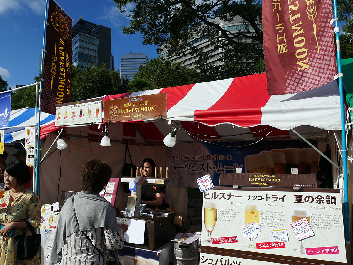 開催3日の13日(日)。台風も無事に過ぎ去り見事なビール日和!お昼時の訪問ですでにお客さんで賑わっていました!