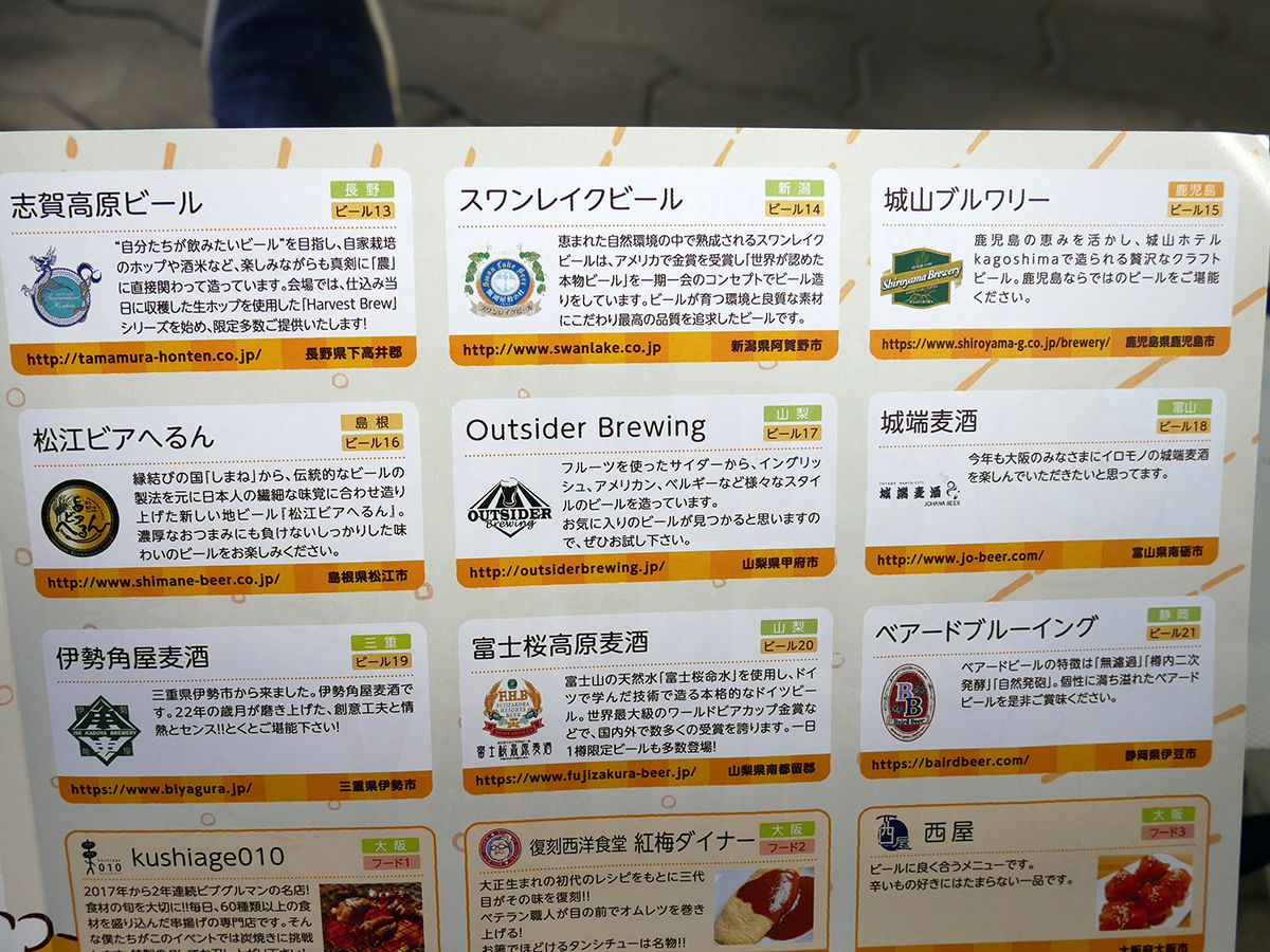 今回の参加ブルワリーは全21店、フードは15店