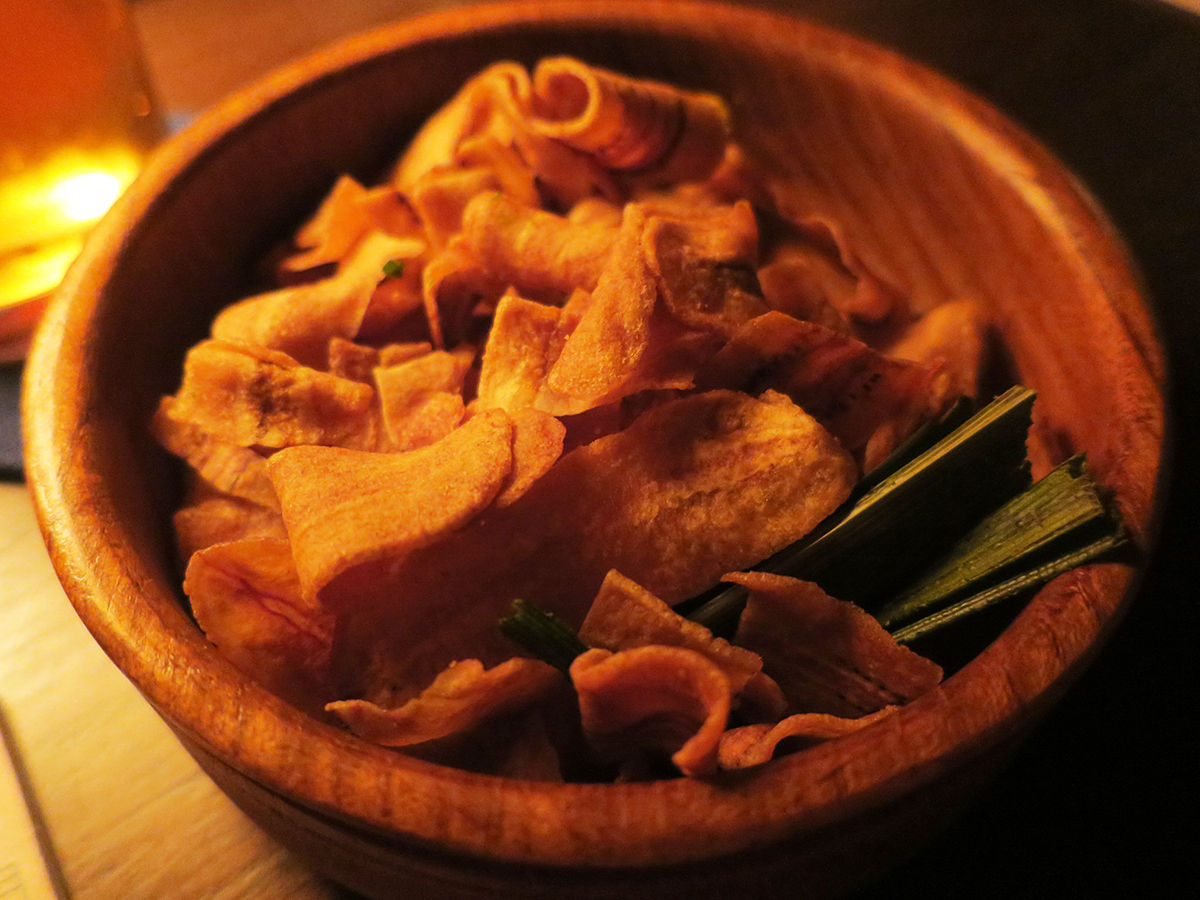 丁寧に作っていただいた一杯、バナナチップスなぞつまみながら大事にいただきました。