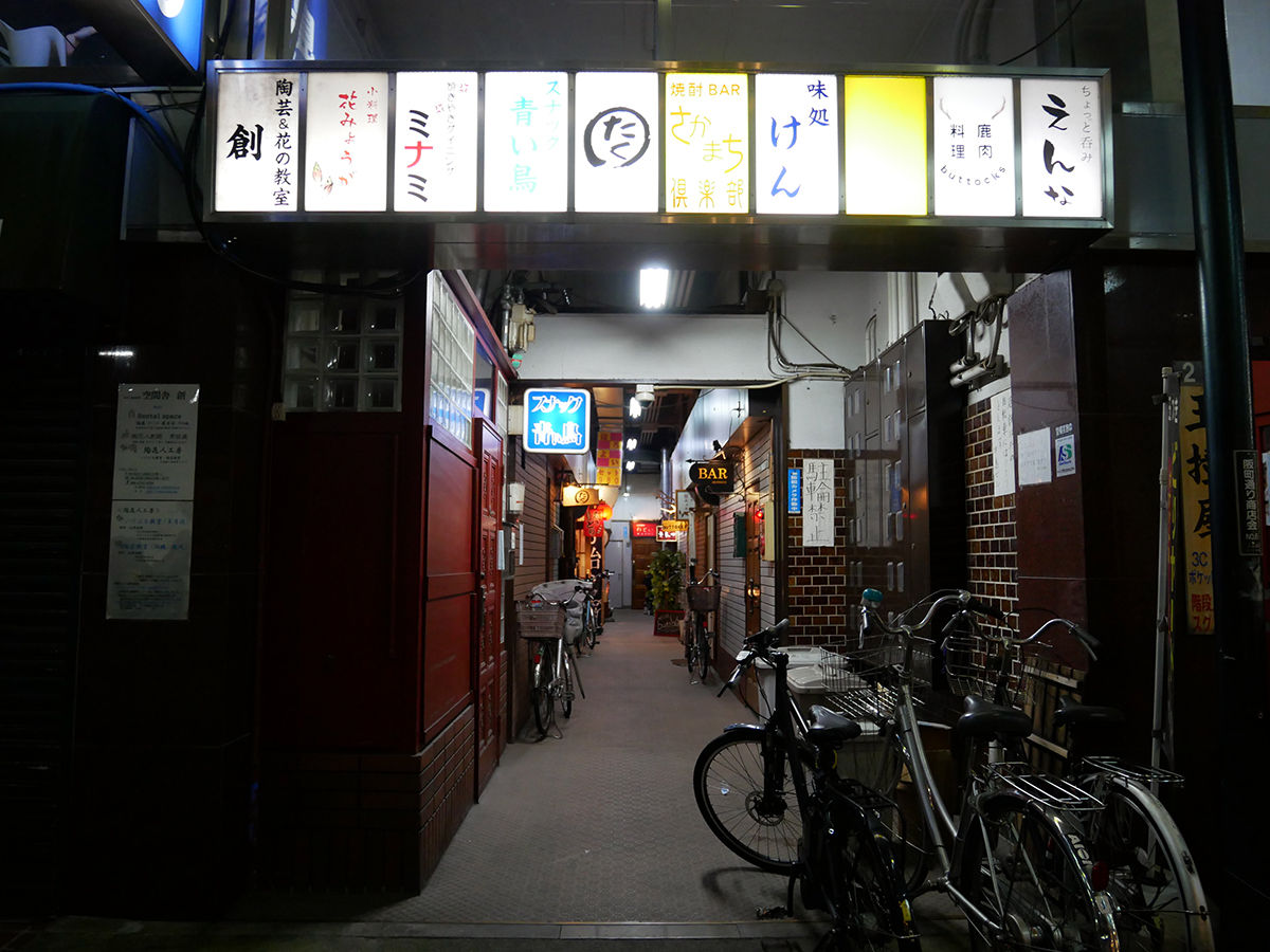 相合橋筋商店街を一本入った路地のビルの最奥という超隠れ家感。(このビル内の酒場たちも気になっている〜
