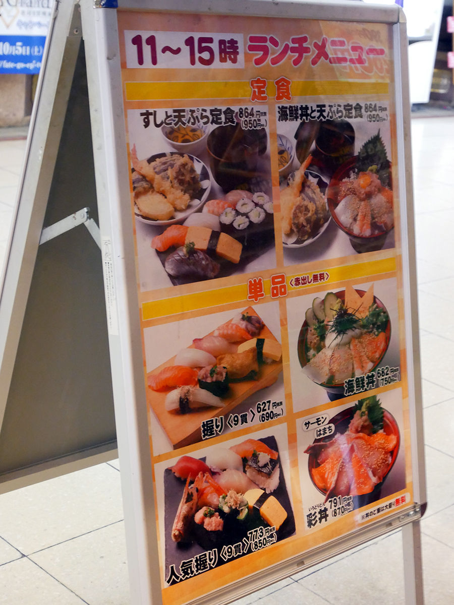 ランチタイムにはお寿司&天ぷらの定食、お寿司、海鮮丼もあるみたい!