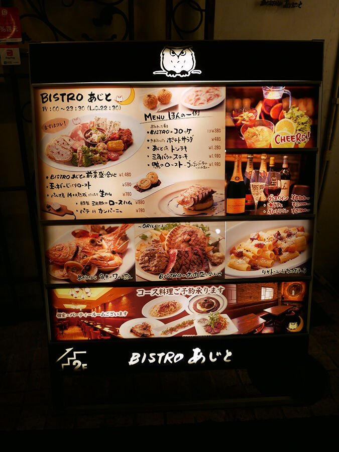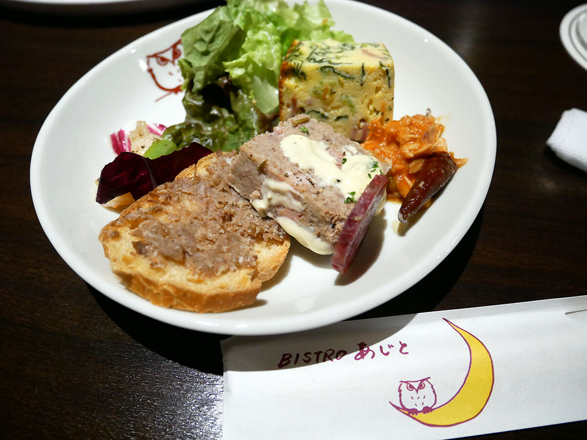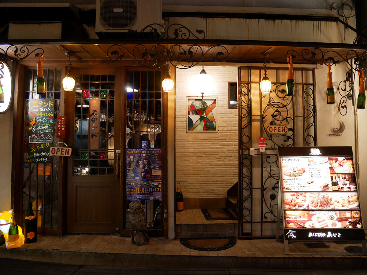 さて、「ビストロあじと」。ちょいレトロ感もあるオシャレ〜な外観からの、