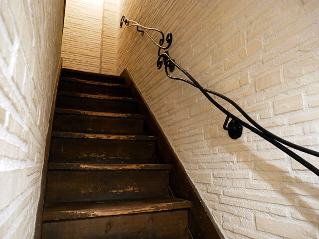 階段を登った店内もまたオシャレてる〜♪ハイカラモダンな洋食屋さん風。ほんと、ヨーロッパの街中にあるビストロみたいな感じ。知らんけど。