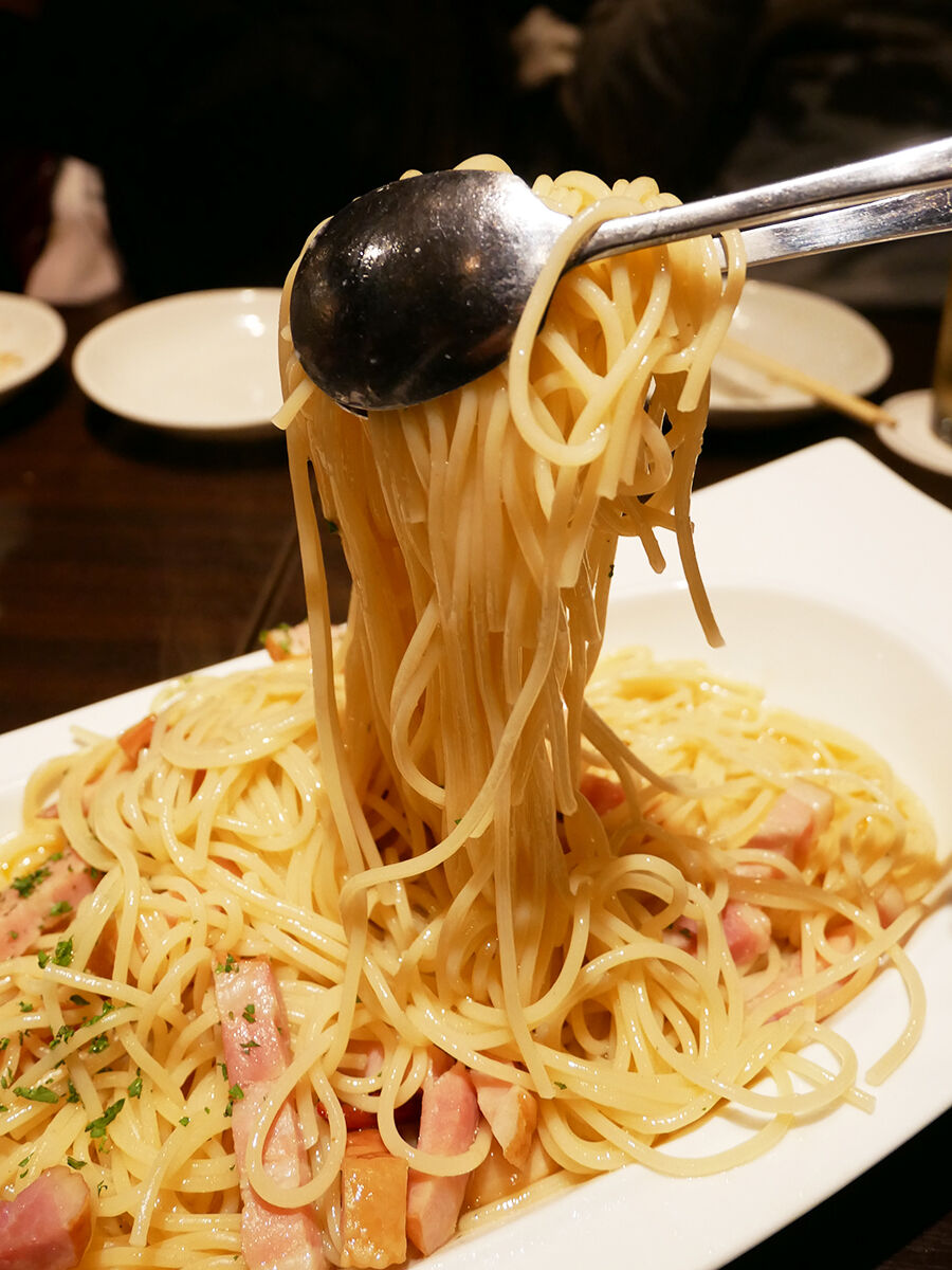 厚切りのベーコンもたっぷり。シンプルに旨い。