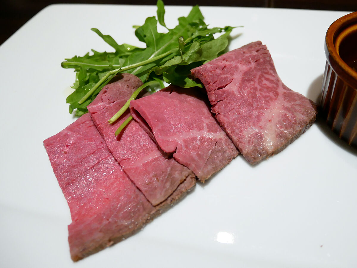 お上品な薄手。で、美しい赤身にちょいサシ。めちゃくちゃ旨い!これもきっちりひとり一枚。もっと食べたい。