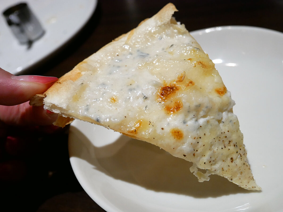 薄焼きでサクッとパリッとクリスピーな生地にチーズたっぷり!ゴルゴンゾーラの塩気に後がけのハチミツが素敵なマリアージュ♡