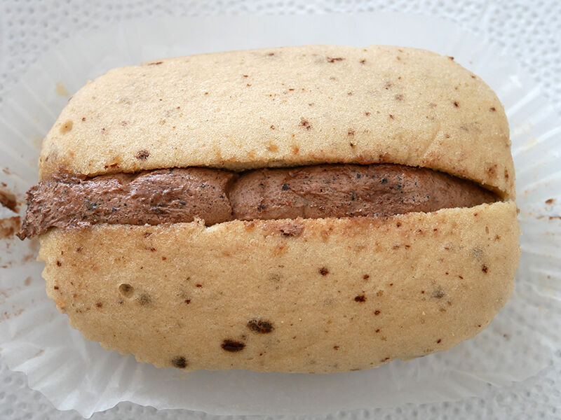 ベージュの楕円フォルム。生地は<カントリーマアム>の粉末入り。って、わざわざマアムを砕いちゃったの!?(笑)