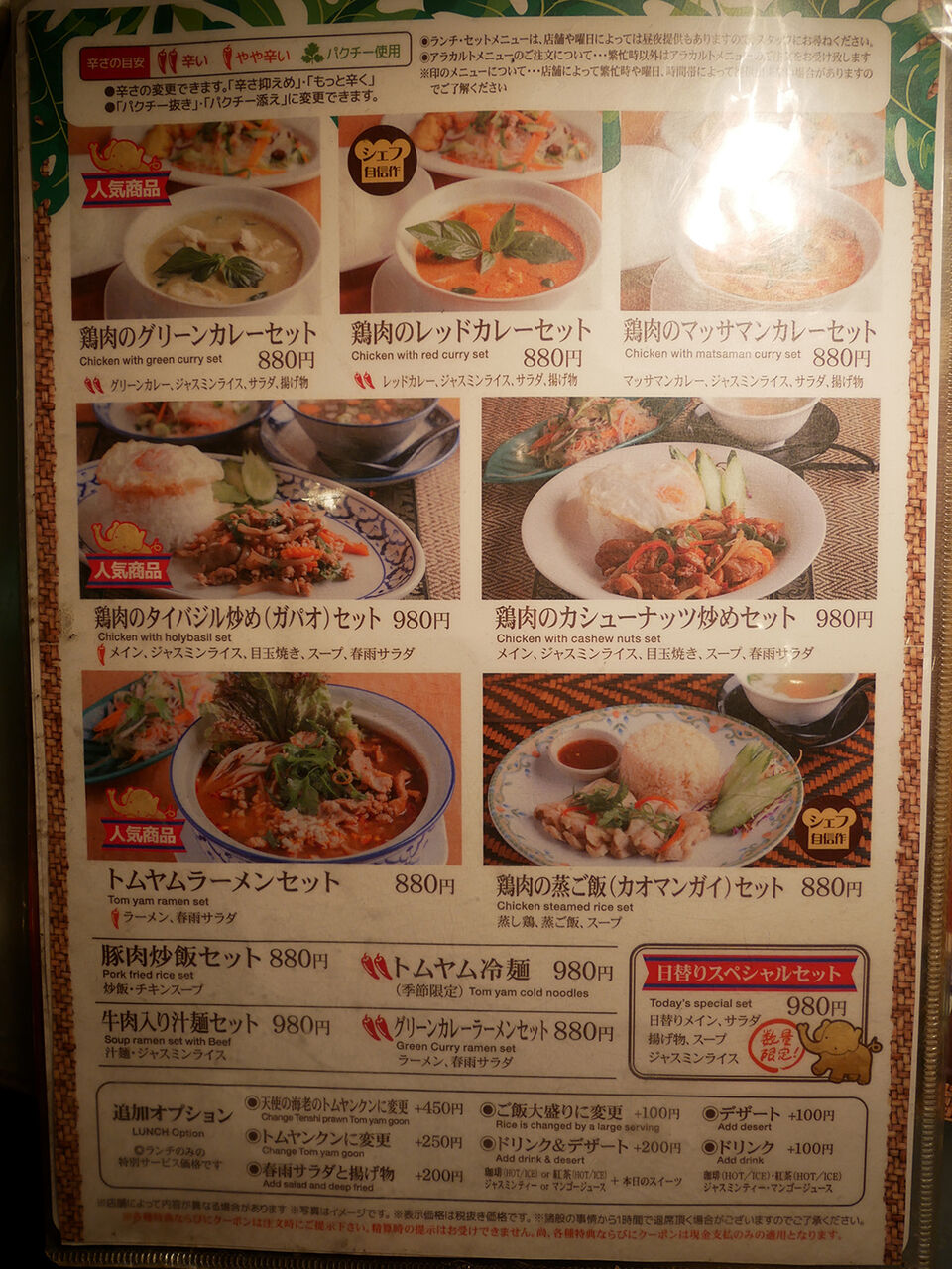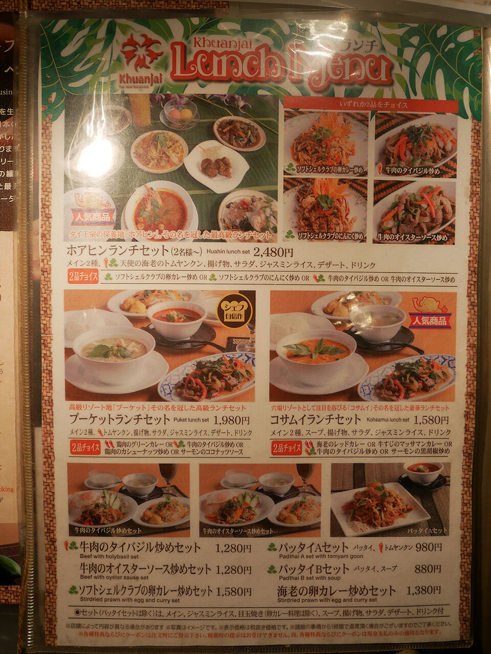 ランチでもタイ料理。お手軽なセットから、ちょっとえぇのん、さらに上のコース仕立てまで豊富に揃いますよ。