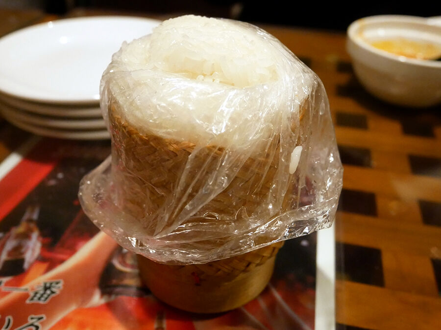 ラープにはもち米を合わせる。ほんっとによく合うの〜。