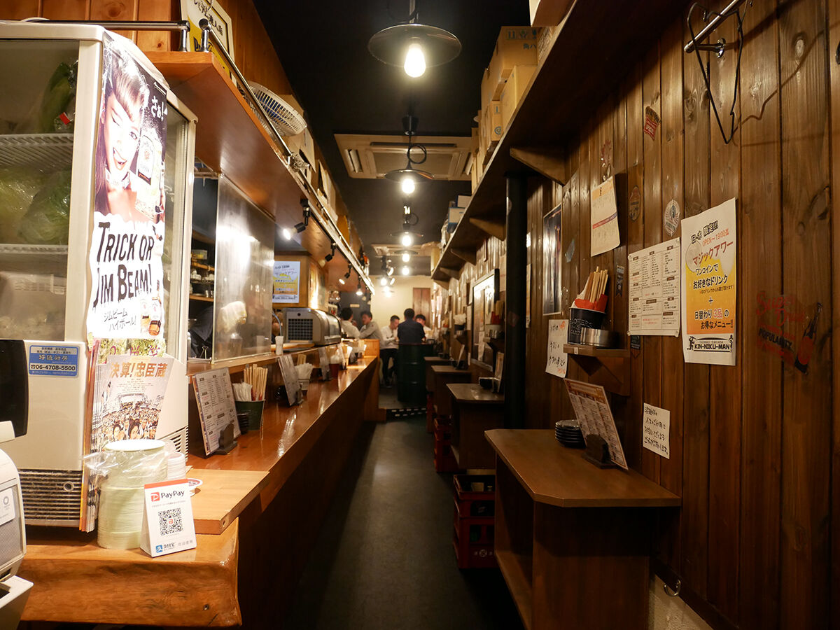 店内は奥にズドーンと伸びるカウンターとその脇のミニテーブル席、奥には樽テーブル席もある。造りまでどこか似てるなぁ。