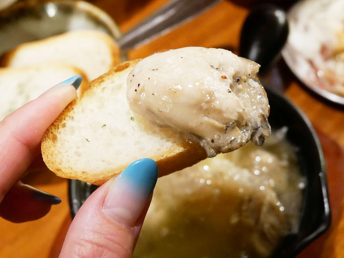 ニンニクガツンと効いた旨味たっぷりのオイルもバゲットでしっかり拭ってね。
