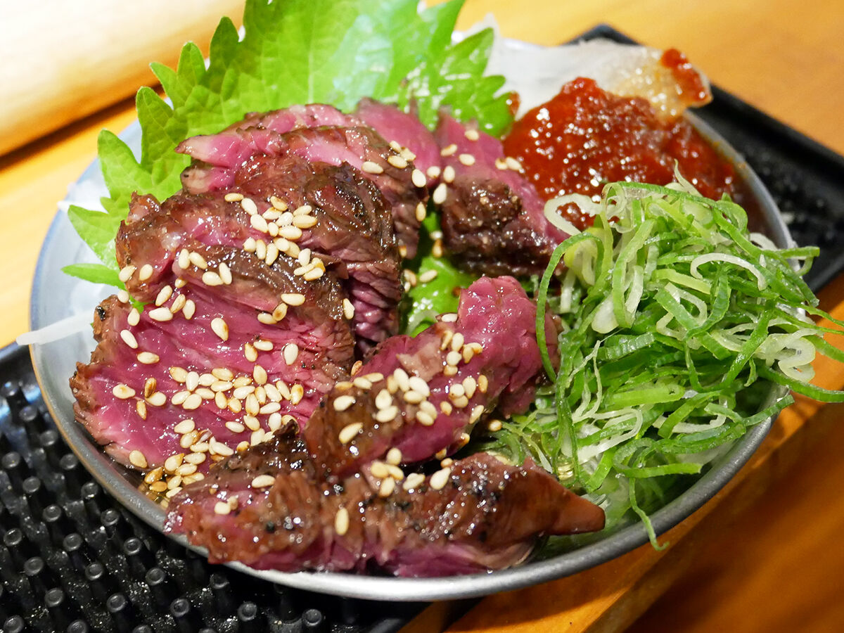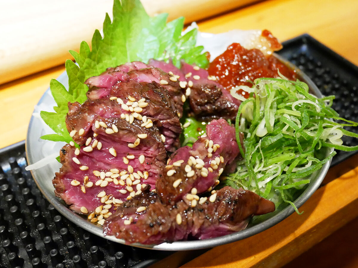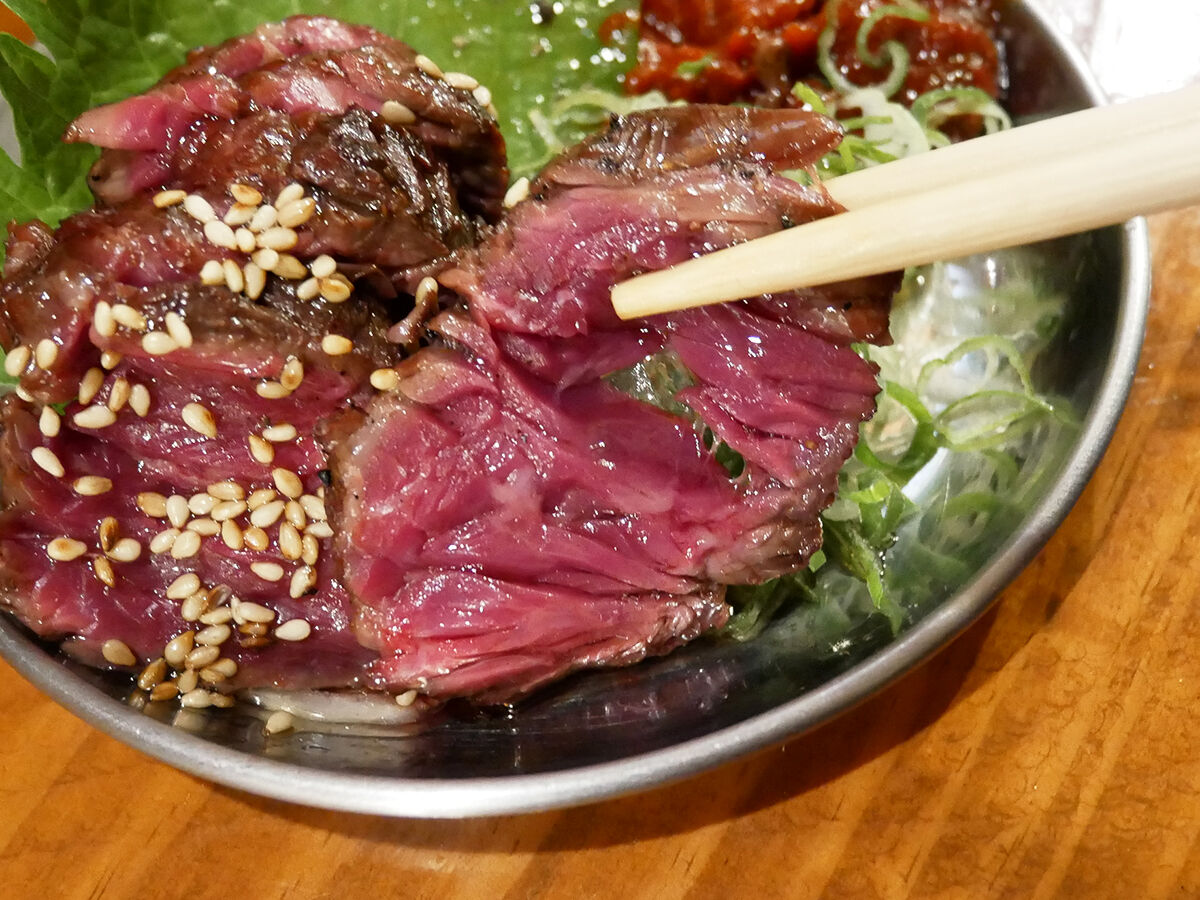 和牛のハラミより俄然あっさり、でも旨味しっかり、ジューシィ。そのままでも良いし、添えられる辛味噌ダレで濃い味も良し。