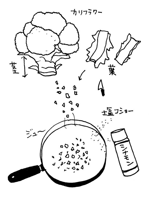 材料:カリフラワーの茎と葉、シナモンパウダー