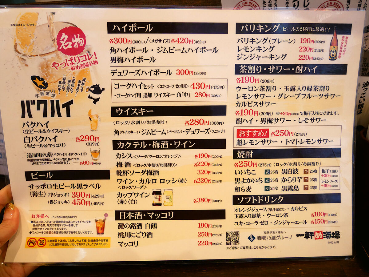 「一軒め酒場」は酎ハイ、サワー系が安い!なので、ビールやハイボールは前もって別で入れてくると良い塩梅なのだ(笑)