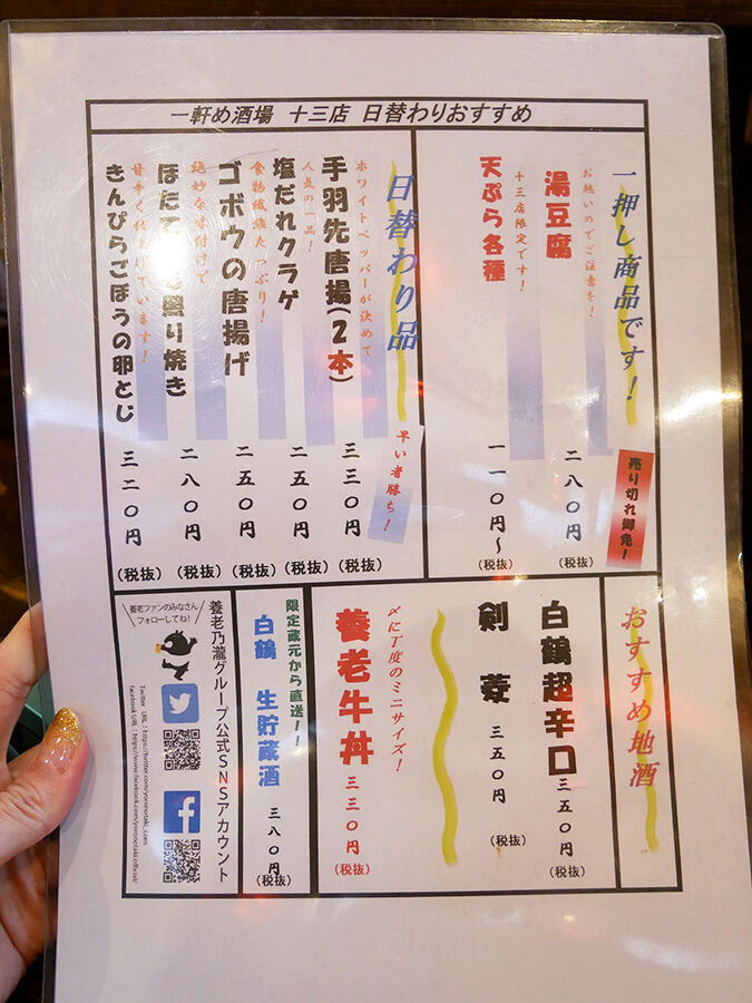 チェーン酒場ながら、ここ十三店はどうにも居心地が良い。チェーン店のマニュアル接客っぽい感じが全然なくて、個人経営の酒場みたいなね。夜は知らんけど。平日の昼間は特にほっこりできちゃいます。