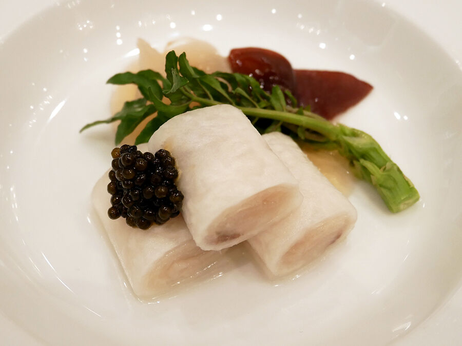 さっぱりとした味わいの<オリーブぶり>(ハマチが育ったのん)、程よい甘みのかぶらに、キャビアの塩気の良い塩梅。