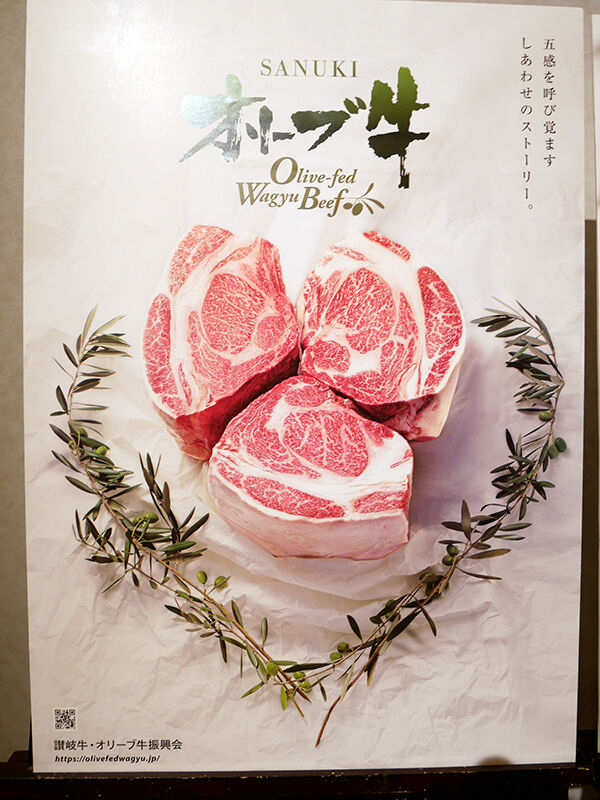 オリーブ採油後の果実を与え育てられた、香川県だけのプレミアム黒毛和牛。コクありでもさっぱり、やわらかくてヘルシーなのが特徴。