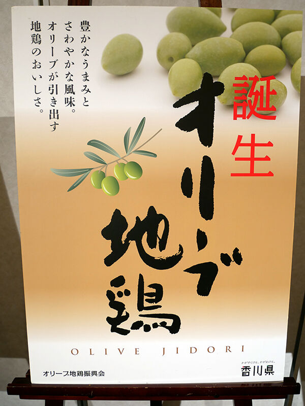 香川の地鶏「讃岐コーチン」と「瀬戸赤どり」に、やはりオリーブ採油後の果実を与え育てられた地鶏。前者2種よりさらに旨味が強いのが特徴。