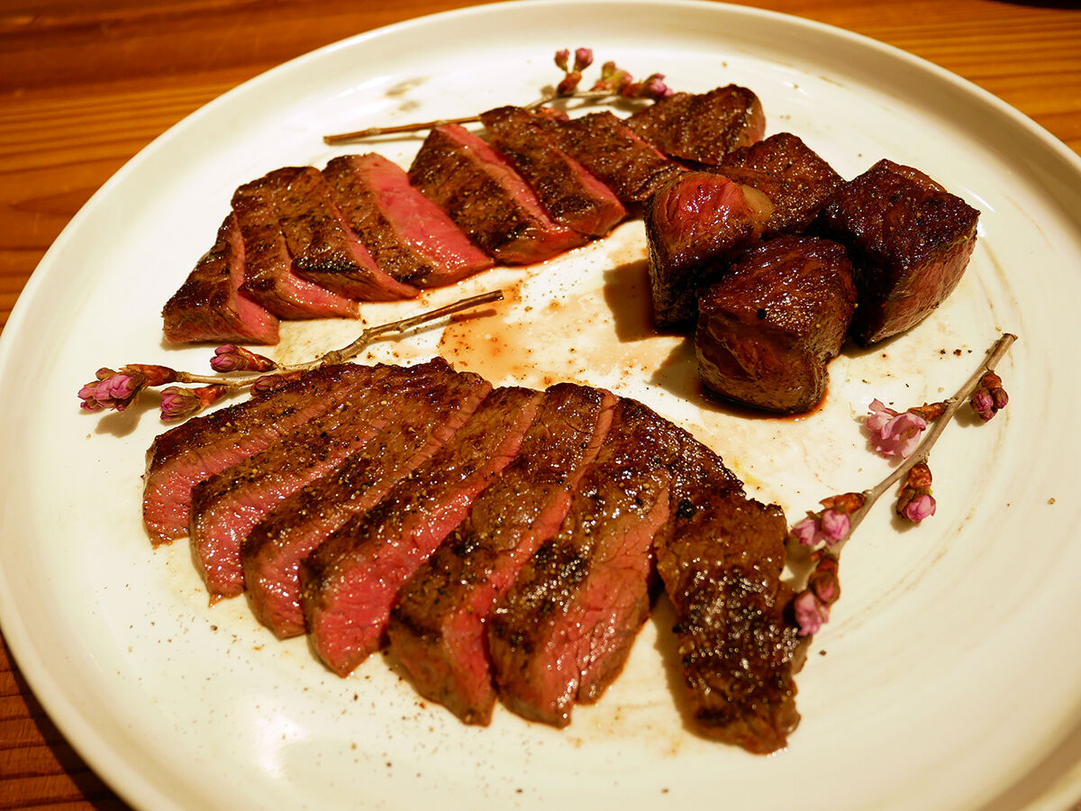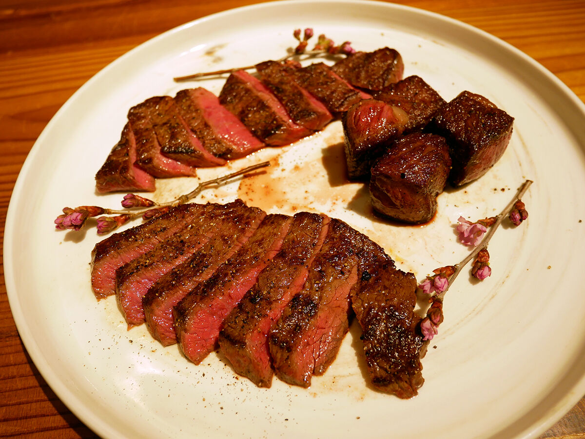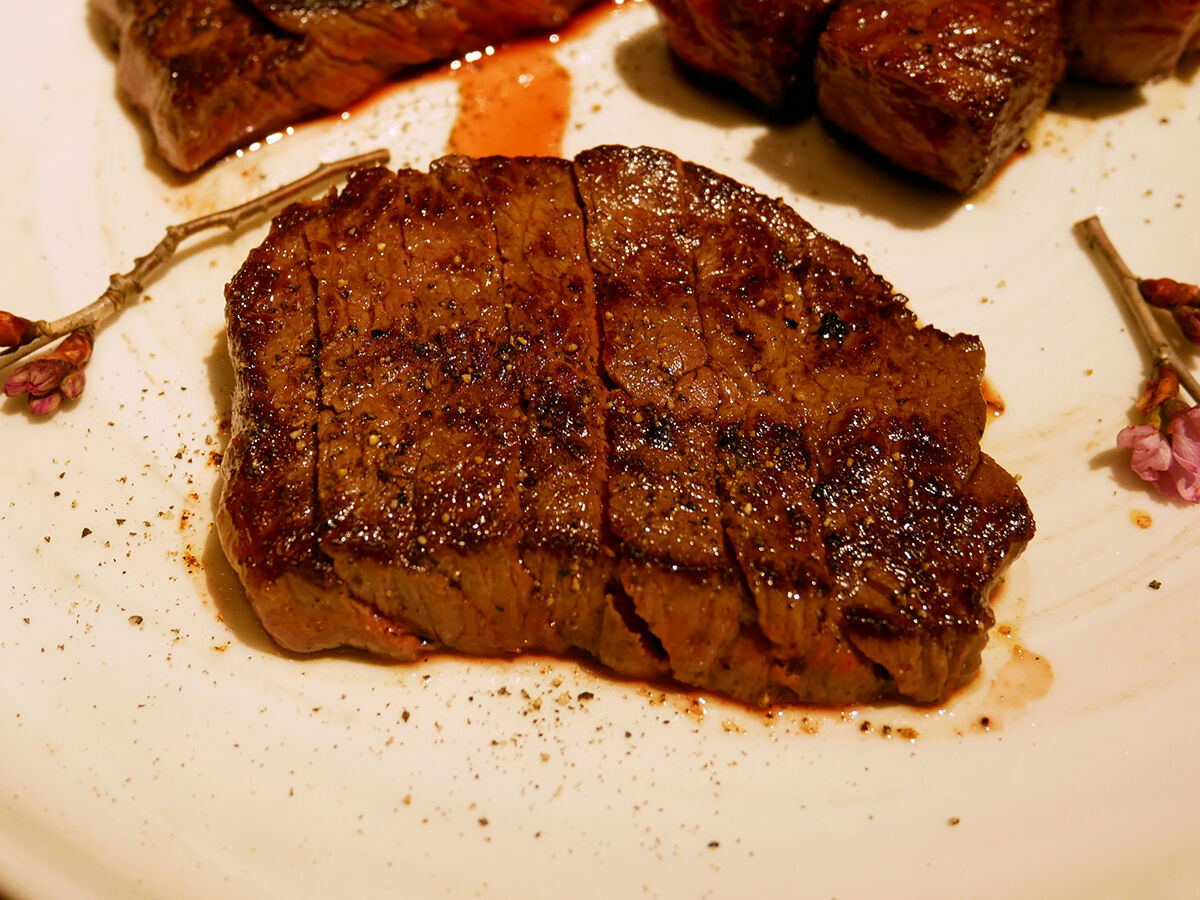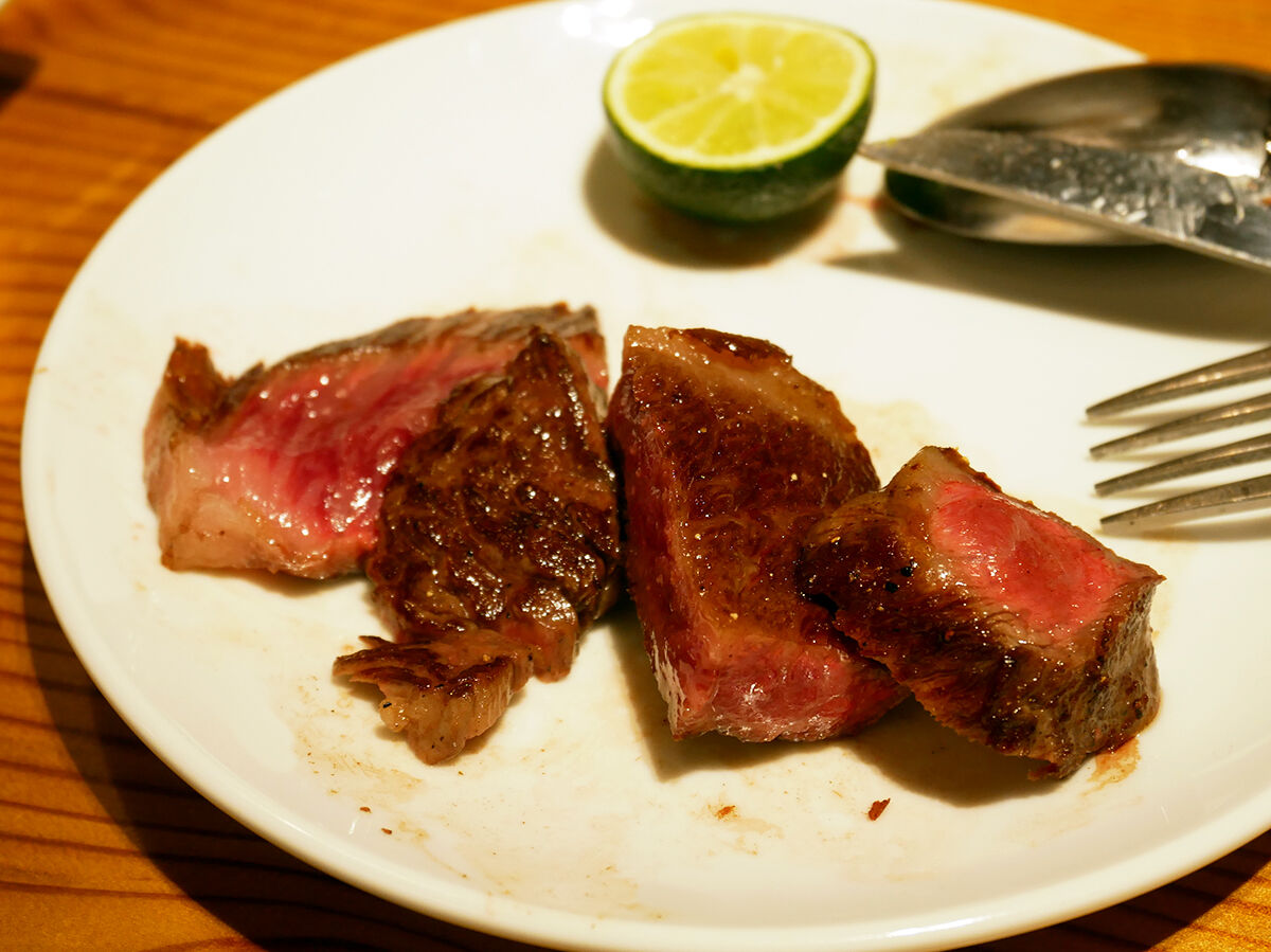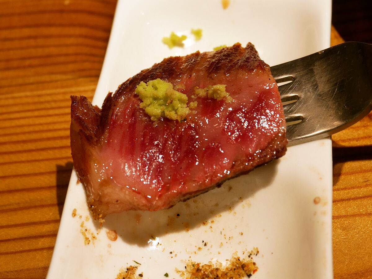 外こんがり中ミディアムレア。めちゃくちゃウマイ!