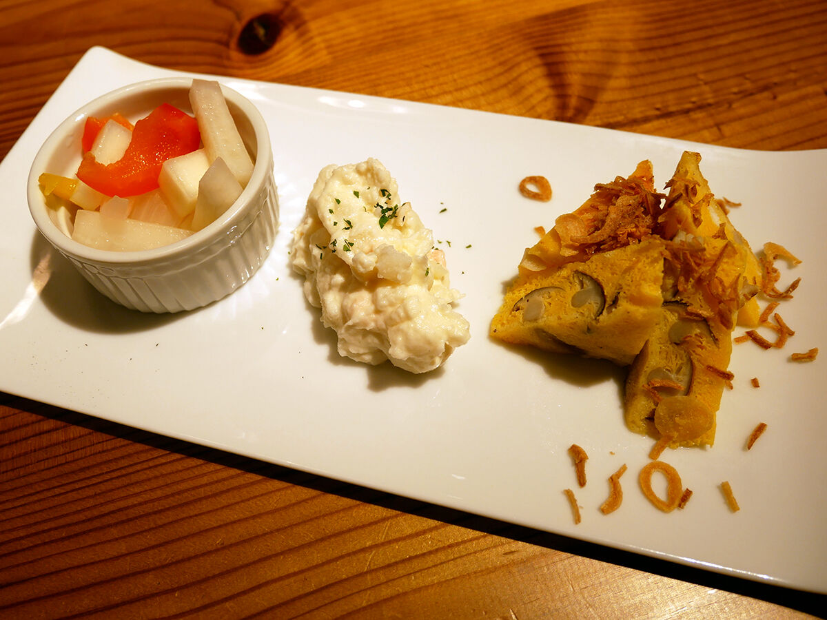 自家製ピクルス、ポテトサラダ、スペイン風オムレツ