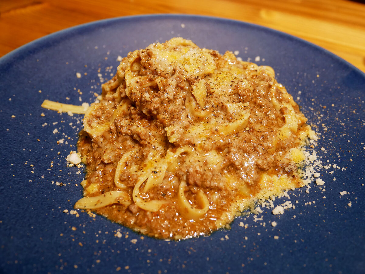 旨味たっぷり肉のソースが幅広平打ちのパスタに絡むからむ〜!肉の存在感がすごい。ソースを楽しむパスタ、なのだ。
