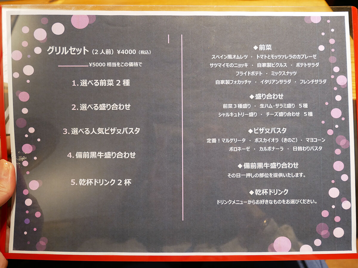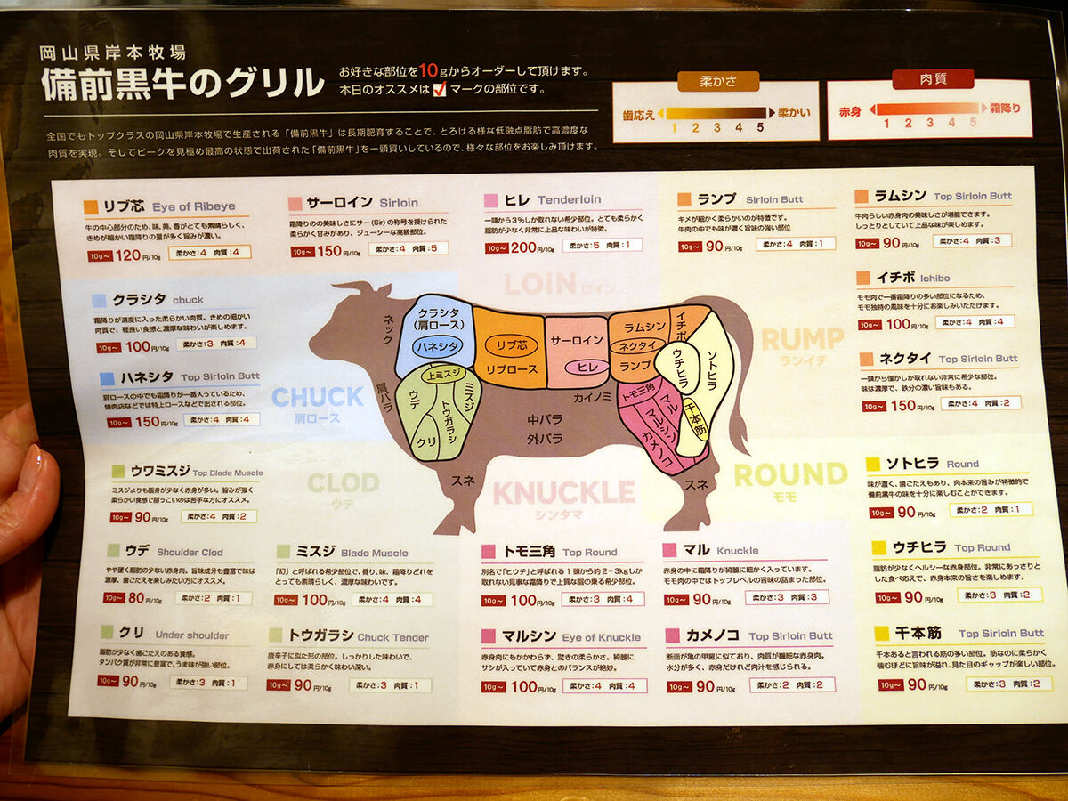 そう、こちら「モトカラ」では、岡山のブランド牛・備前黒牛を一頭買いしていて、様々な部位を楽しめるのだ。そんなわけで吟味して4種いただきましょ。