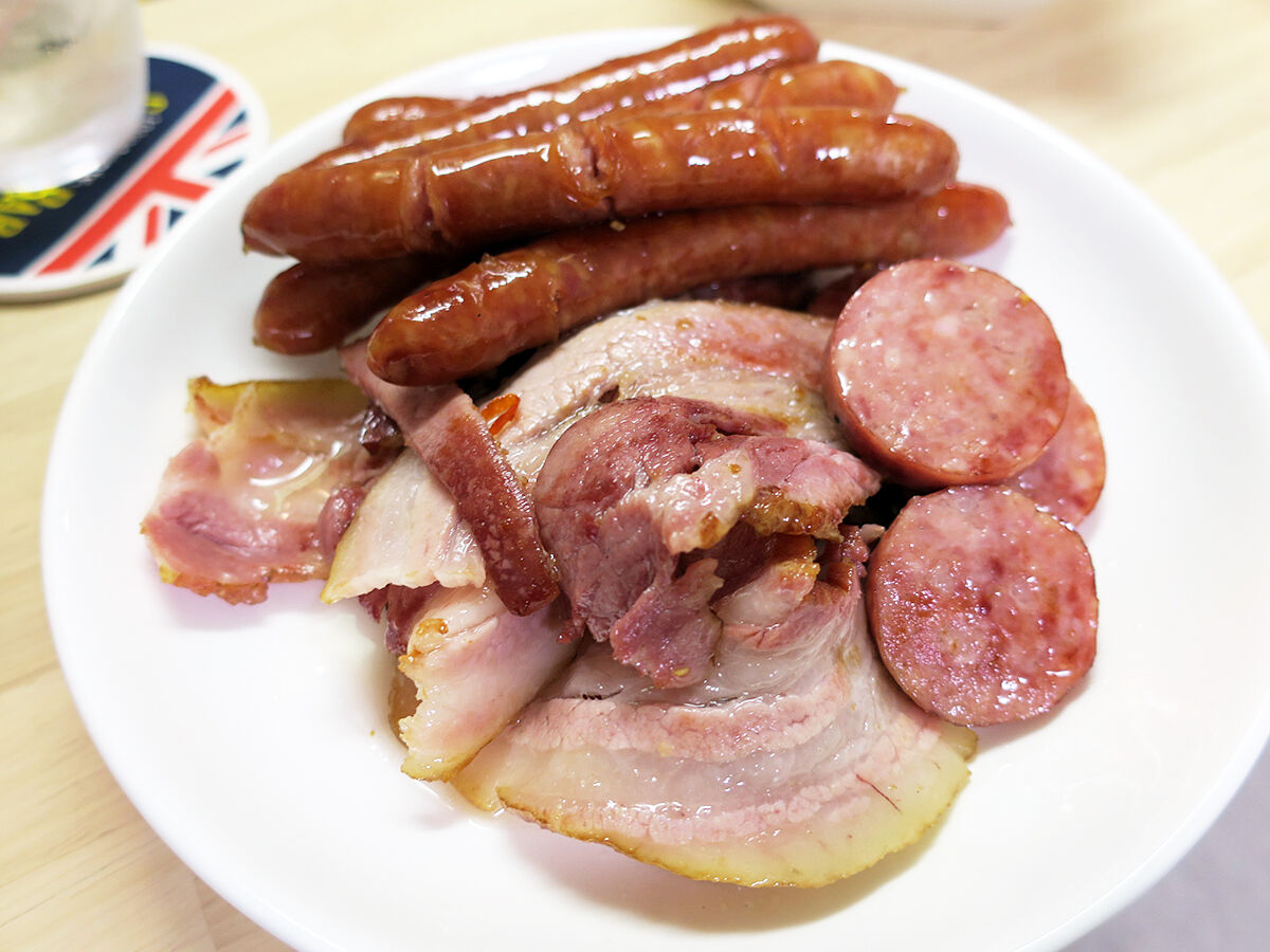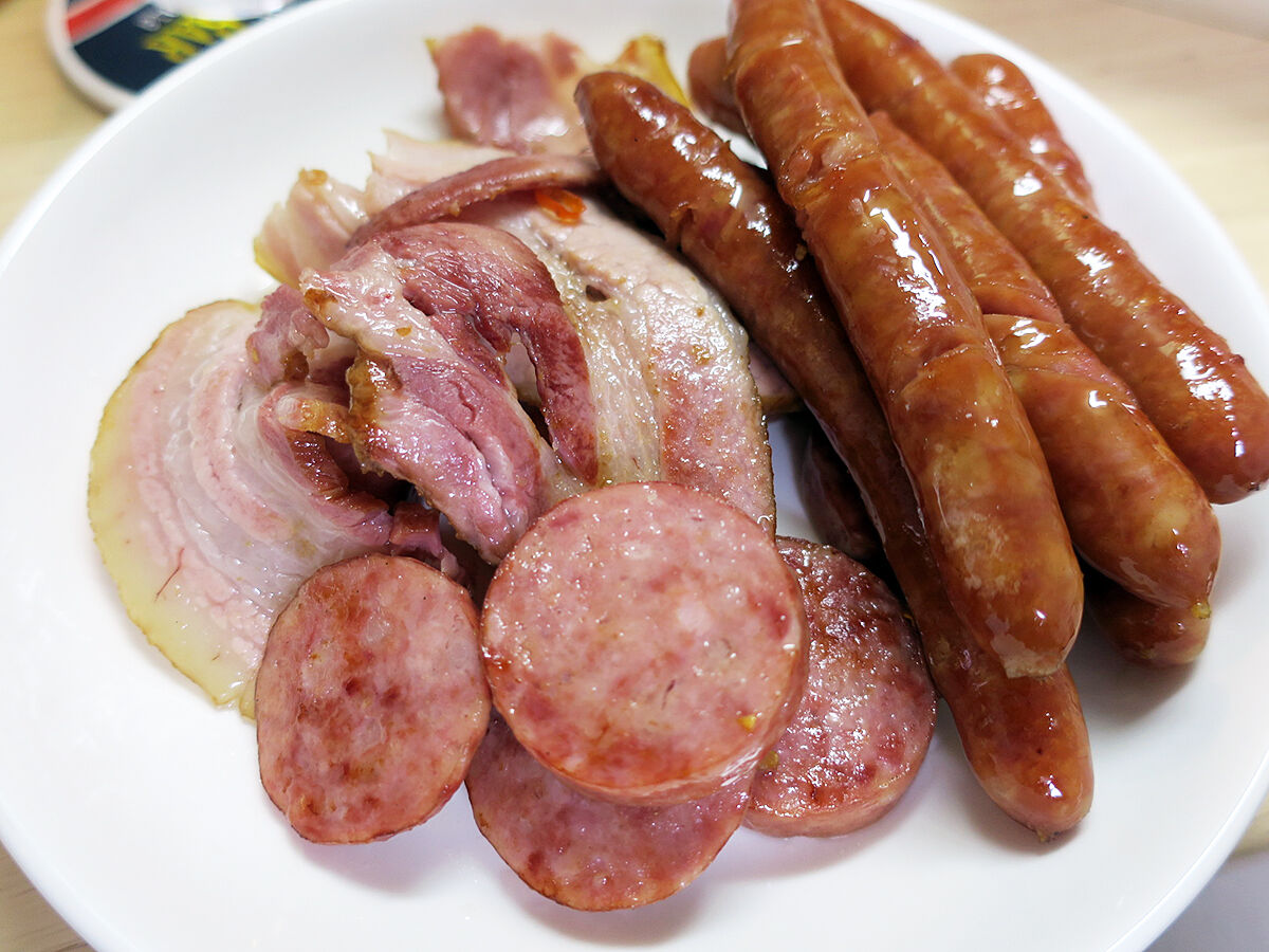 ぶりぶりウインナー、旨味たっぷりサラミ、脂身たまらんベーコン。スーパーとかで買うそれらとは雲泥の差やね。抜群に旨い!!