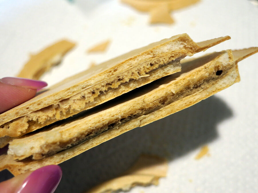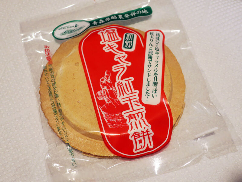 りんご風味のせんべいで塩キャラメルをサンド。これも美味。
