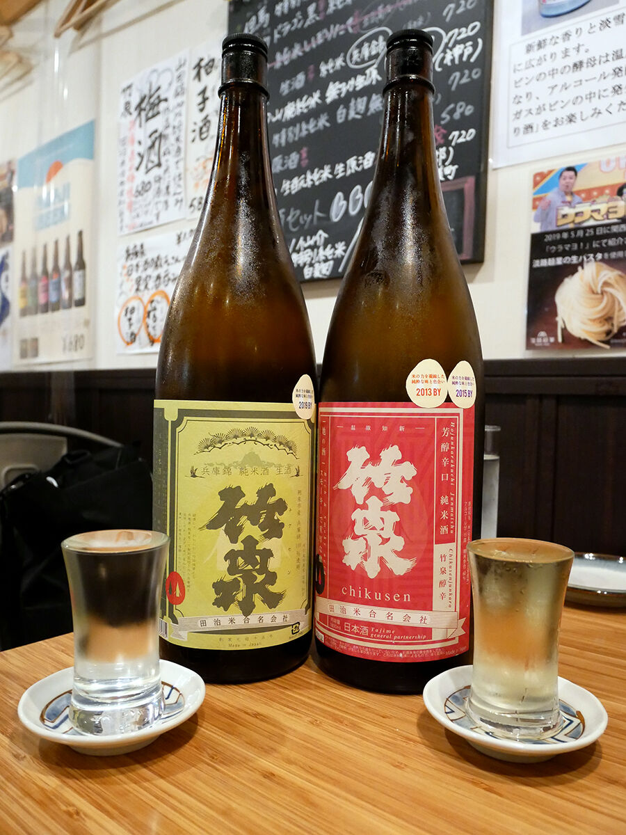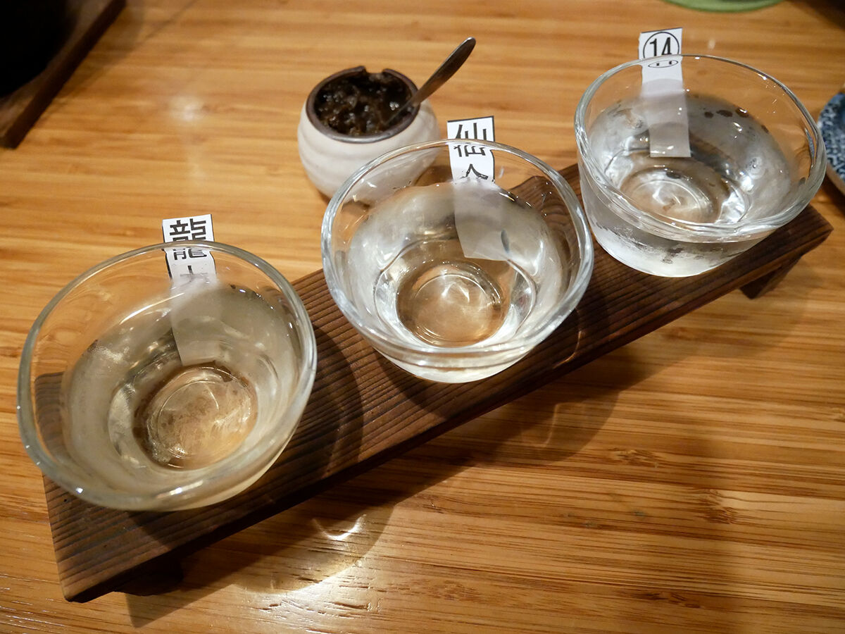 竹泉の飲み比べ〜。で、醇辛の方はスモーキーなの!おもしろい〜!