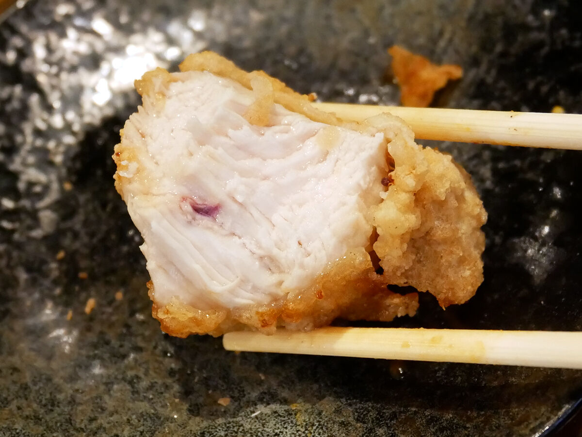 むね肉かな?でもパサつきなし、肉厚だけどめっちゃやらかくて超しっとり〜旨味がギュギュッととじこめられている!