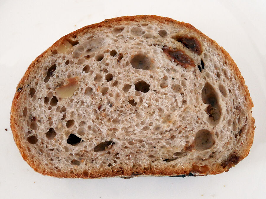 レーズンとクルミの入りも、多からず少なからず。満遍なく練り込まれどこを食べてもうまいこと交わる。バランスがとっても良い。