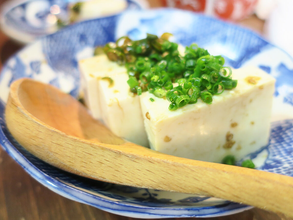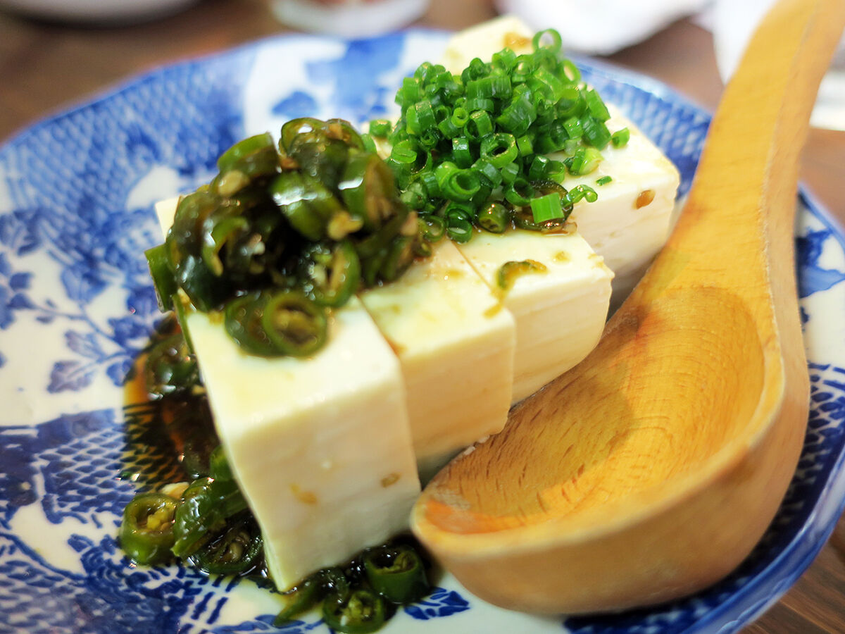 なめらか絹ごし豆腐にネギ&青唐辛子たっぷり!