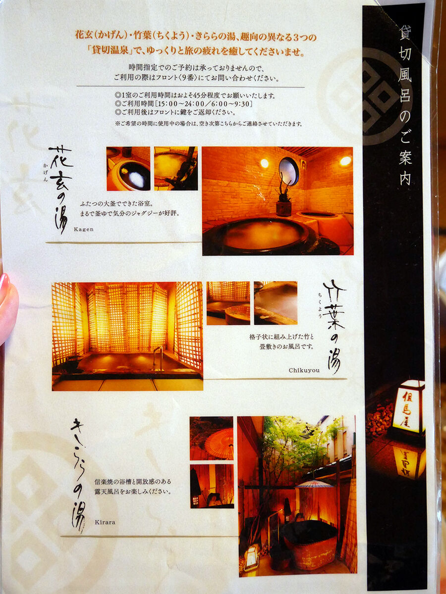 そんなお風呂は、貸切で3タイプ。空いていればいつでも利用可能、別途料金も無し。