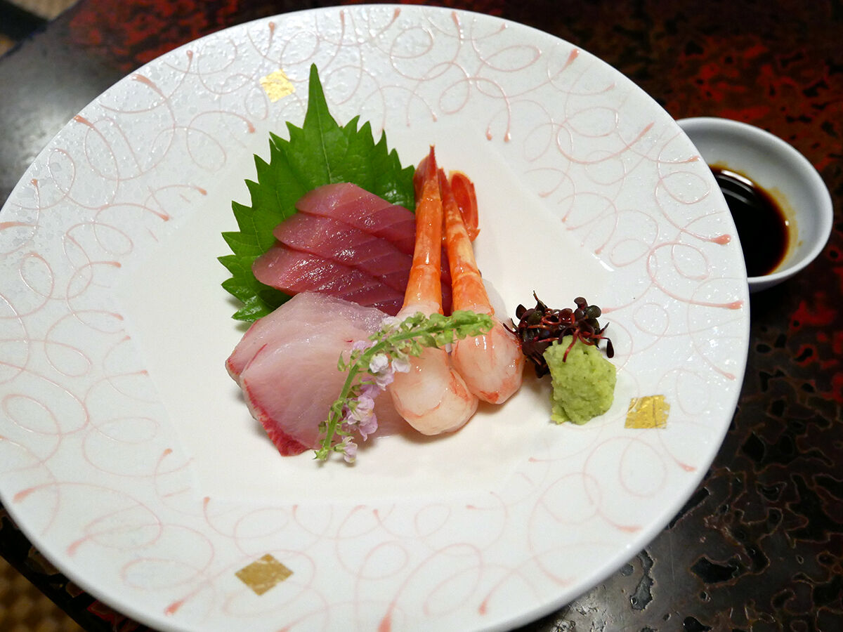 旬魚のお造り:ヨコワ、甘エビ、カンパチ
