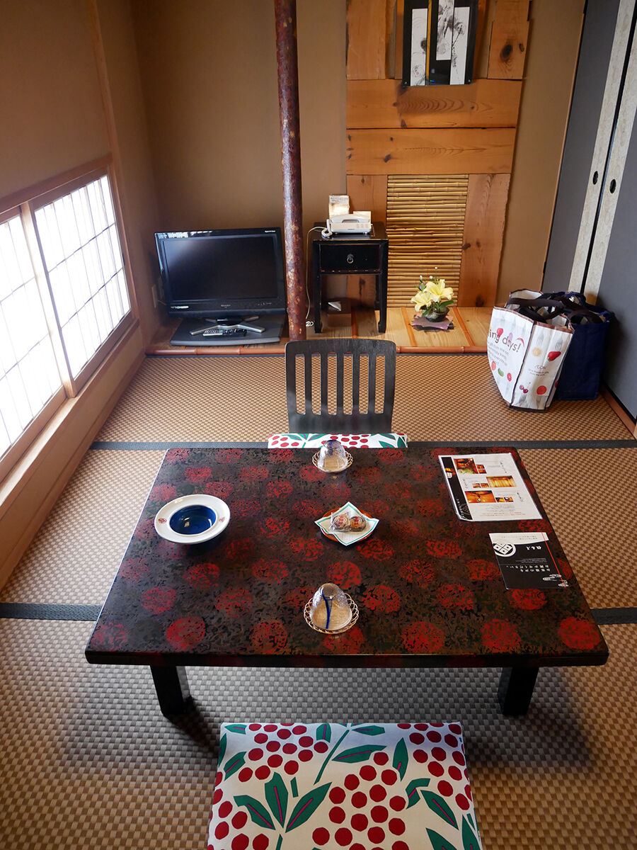 部屋内にふたつある窓は障子戸になっていて。外の景色が目に入らないお部屋って珍しい。