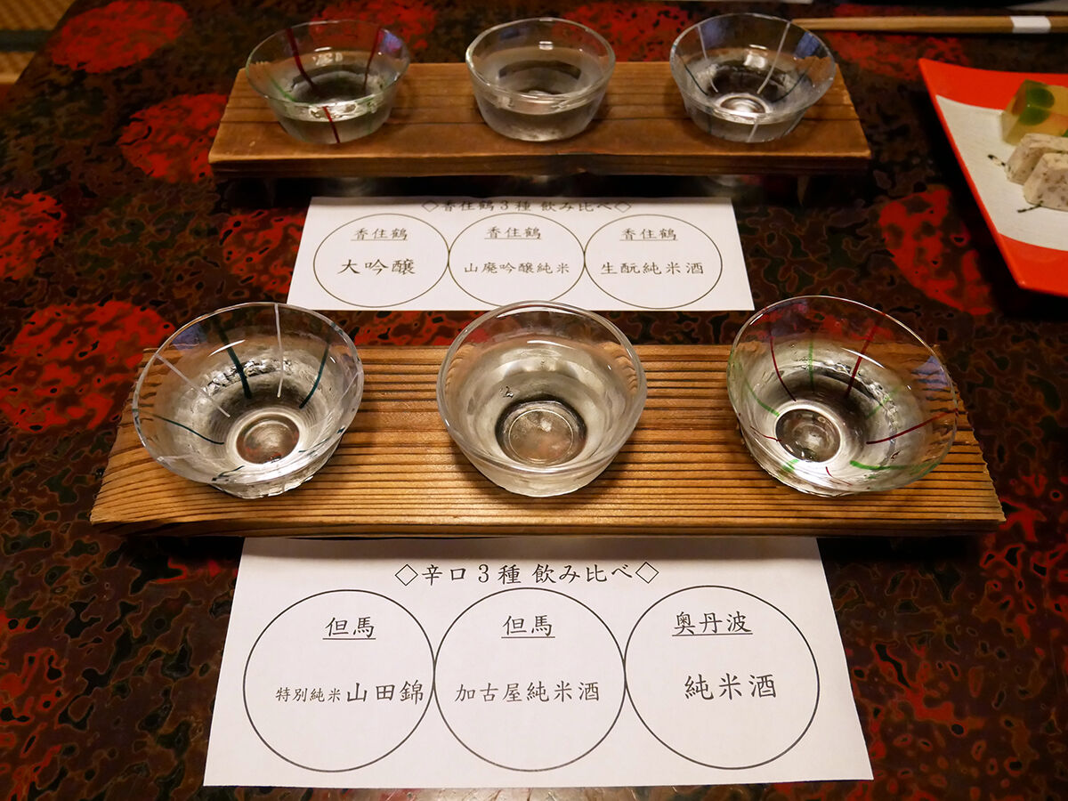 いくつかある地酒3種の飲み比べセットをそれぞれチョイス(料金別途)