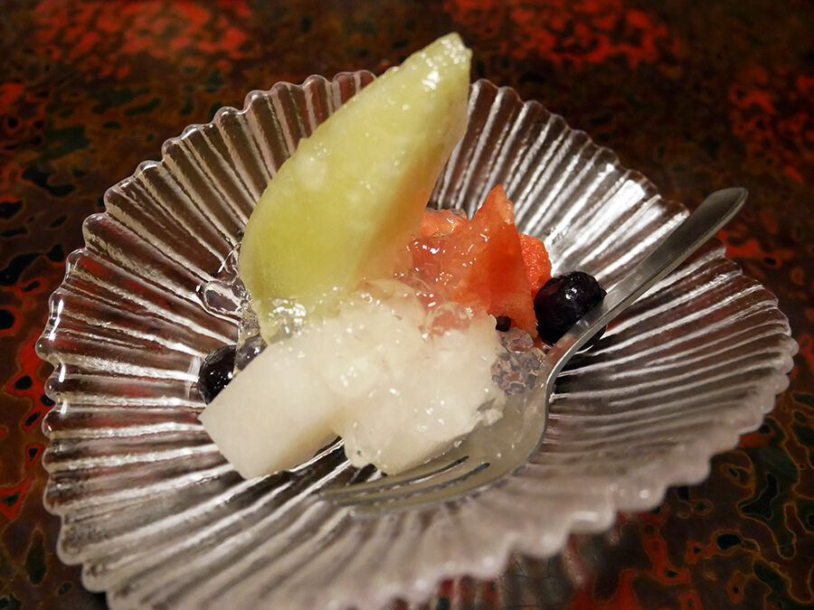 デザート:メロン、西瓜、ブルーベリー、梨、レモン風味ジュレ
