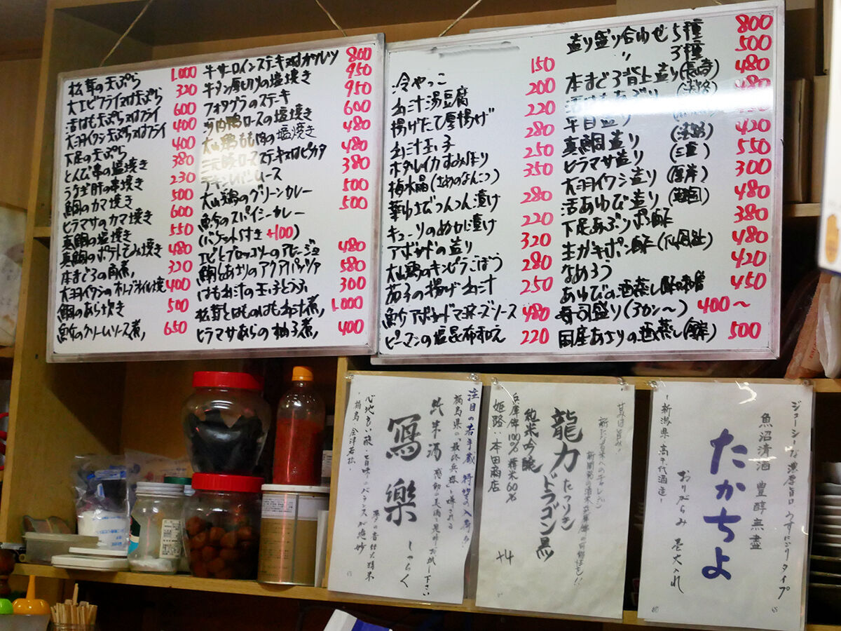 アテはお造り、魚介系をメインに、その他おつまみ一品、焼きもん、揚げもん、創作系などなど、オールマイティにスタンバイ。