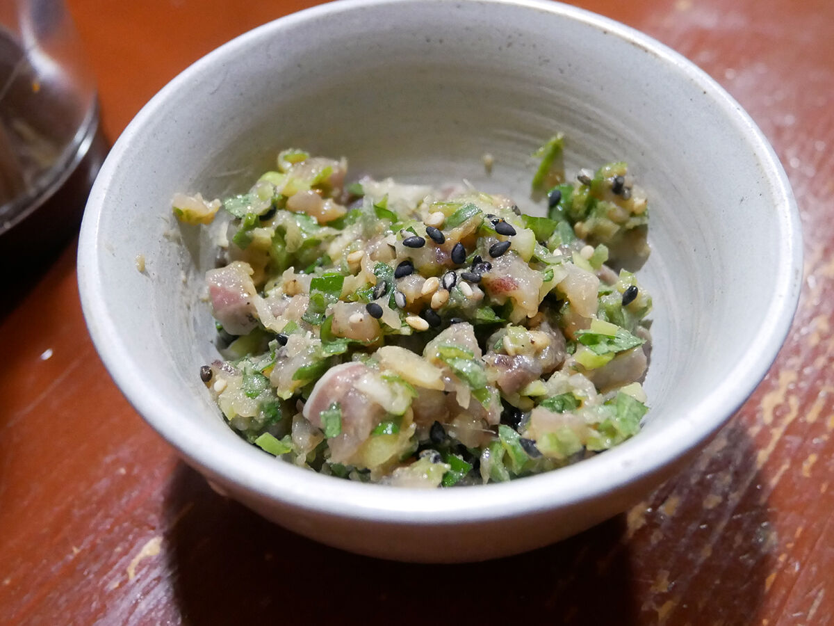 イワシ(だと思う)に、ネギ生姜、味噌もちゃんときいてるけど、甘過ぎなくって軽やか。おいしい。