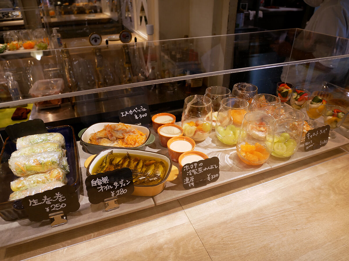 なんと言っても、ショーケースに並ぶカラフルな小皿料理たちが魅力的!
