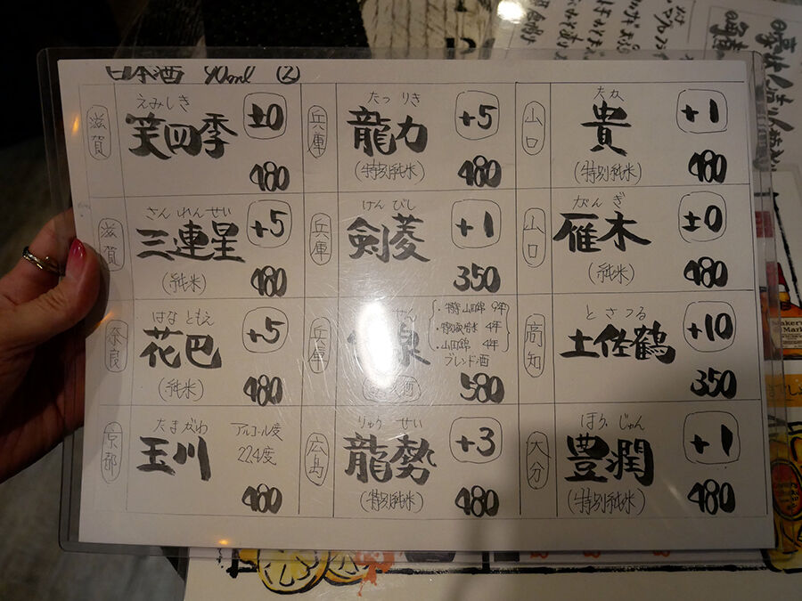 ドリンクは定番ひと通りに加え、とりわけ日本酒が豊富。(詳細は記事最下部にてどうぞ。)