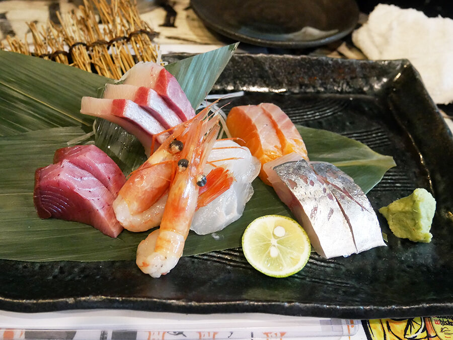 ヤイトカツオ、ブリ、甘エビ、サーモン、ヒラメ、アジ