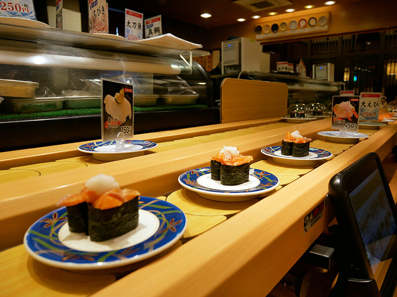 回転寿司ながらレーンに流れる寿司は少なめ。時間帯にも寄るのかな?