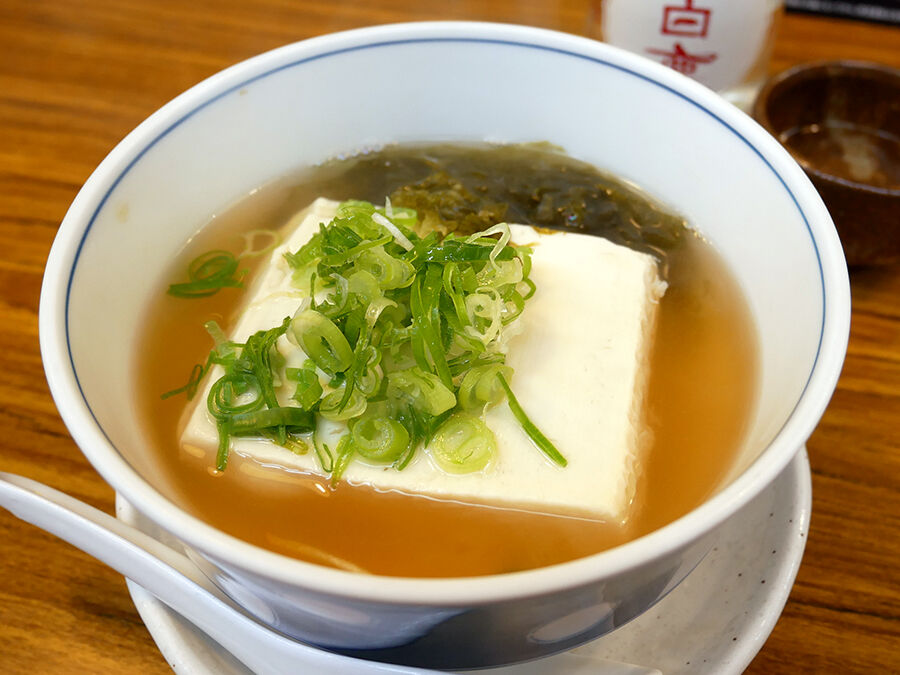 湯豆腐300円半丁くらいのお豆腐を中鉢にお出汁たっぷりと、ネギととろろ昆布とともに。
